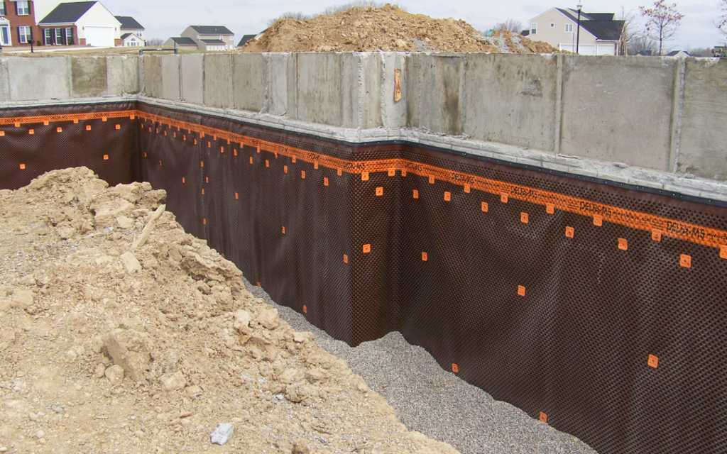 DAMPPROOFING Suggest a termThe black, tar like waterproofing material applied to the exterior of a foundation wall. Example: