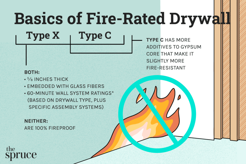 Applies to materials that are not combustible in the temperatures of ordinary fires and will withstand such fires for at least 1 hour. Drywall used in the garage and party walls are to be fire rated, 5/8″, Type X.