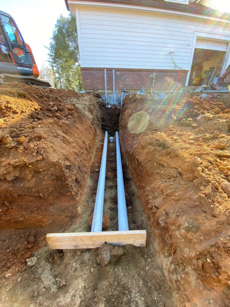 Any trench that shares pipes of a different kind Electrical, gas, and water can share the same trench. EXAMPLE: