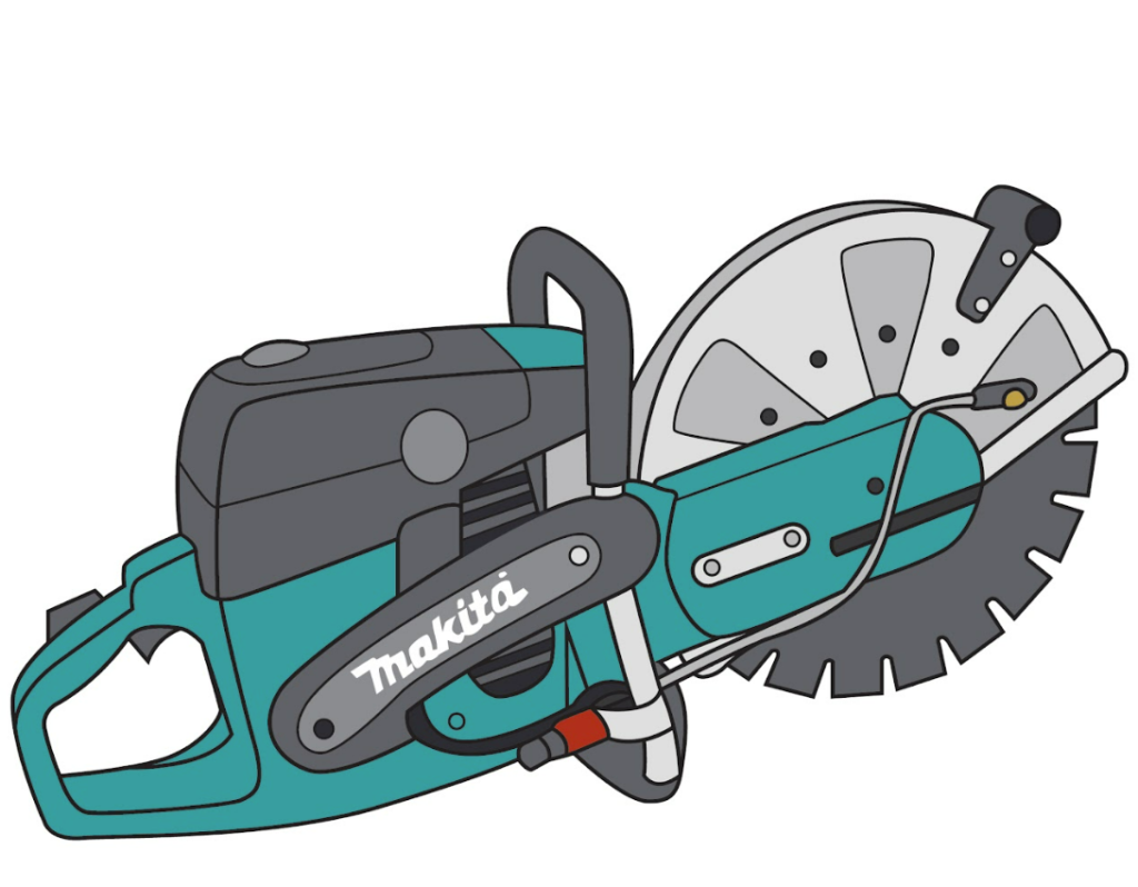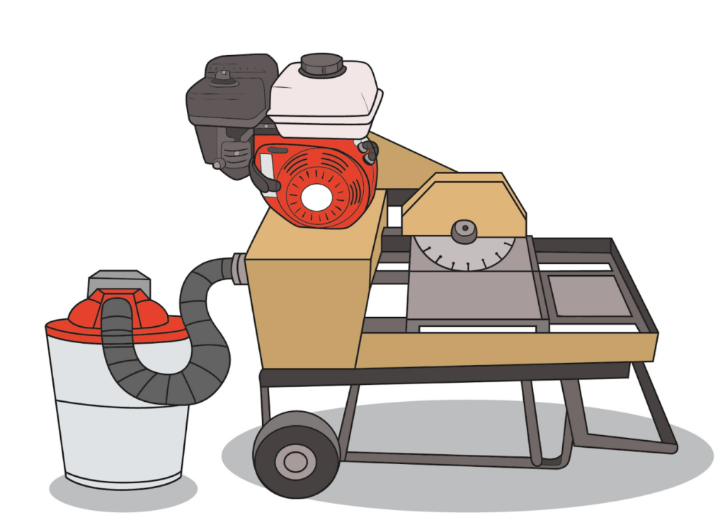 A masonry saw used to cut pavers. Paver saws cut be dry cut or wet cut. Dry cut saws must have a vacuum attachment to capture the dust.