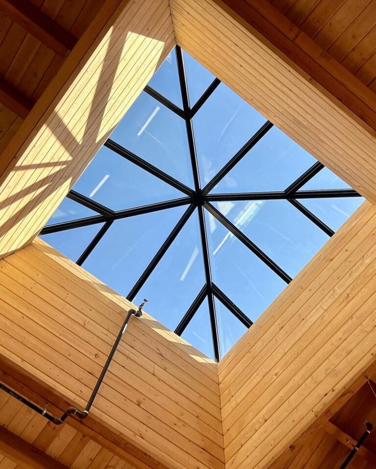 The skylight let the sunlight come in and was beautiful.