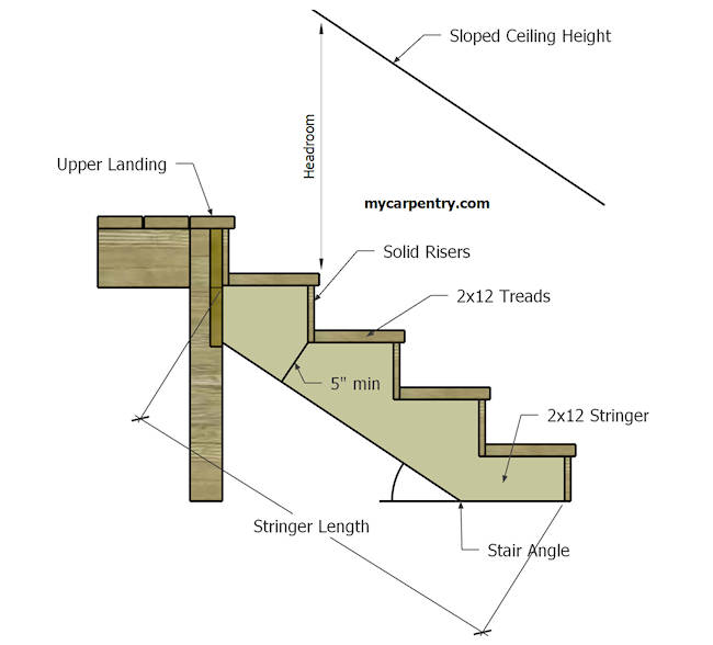 Supporting member for stair treads. Usually a 2 X 12 inch plank notched to receive the treads; sometimes called a “rough horse.”