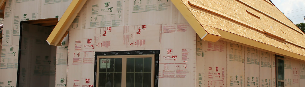 Exterior laminated sheathing nailed to the exterior side of the exterior walls. Normally ¼” thick, 4 X 8 or 4 x 10 sheets with an aluminumized surface.