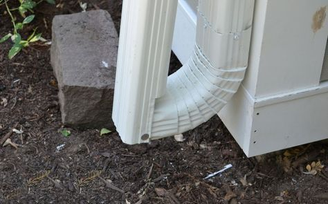 The downspout extension that directs water (from the home’s gutter system) away from the home. They typically swing up when mowing the lawn, etc.