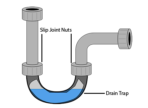 TRAP Suggest a termA plumbing fitting that holds water to prevent air, gas, and vermin from backing up into a fixture. EXAMPLE: The trap was leaking so the plumber fixed it.