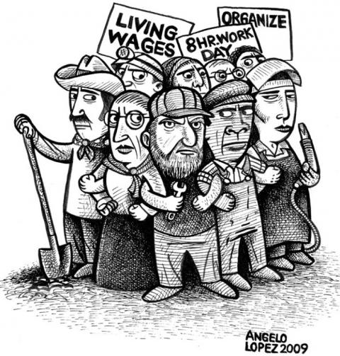A group of workers in the same trade (trade union) or occupation (labor union), joined together under accepted leadership to protect and further their interests through collective actions.  Unions act primarily to obtain increased or uniform wages and improved working conditions and benefits.