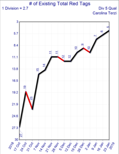 For example, if we were going to make a graph for “client complaints” to see how many of these we were getting weekly, we would put 0 at the top of the graph since we want zero customer complaints. If we take steps to reduce the number of customer complaints, we would get an up statistic, even though the actual amount of the stat is less.
